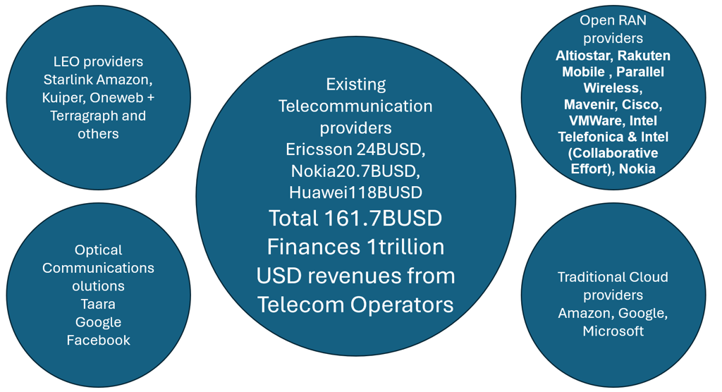 In this part we look at the challengers to the existing Telecom companies VBE model. In the part 1 we looked at LEO satellite companies like Starlink from Elon Musk and Optical communication solutions like Taara and data companies like Google are trying to come into the telecommunications equipment area.