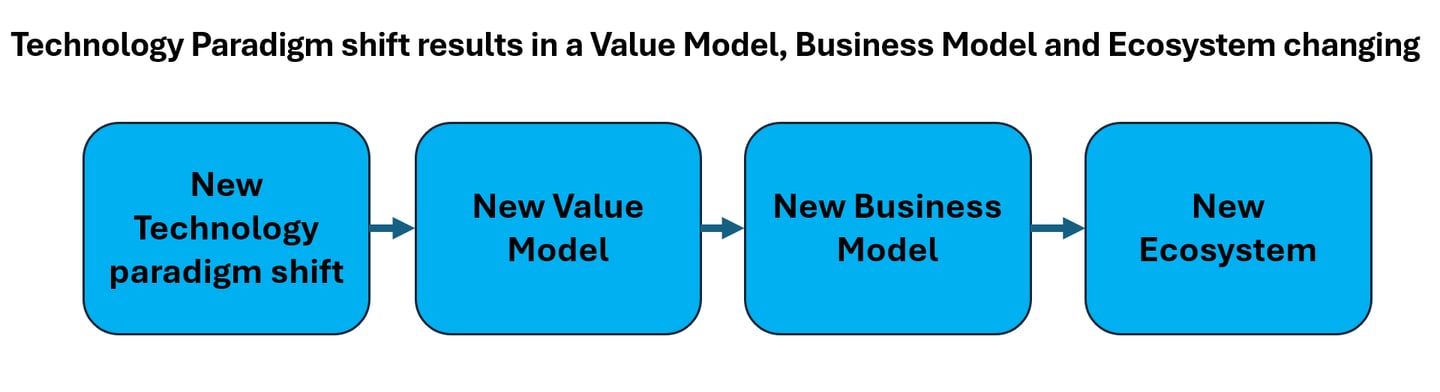 One more crucial factor about VBE models to consider is the change any Technology has on the VBE model, and this has been explained in the VBE model explanation video. And that factor that has played out for the last 200 years is the change any new and better technology can bring to the existing VBE model and given the different competitors challenging the existing VBE model of Ericsson, Nokia and Huawei, it is only a matter of time before the competitors tie together a model around the unconnected segments for communication. And that dynamic is explained in the diagram below.