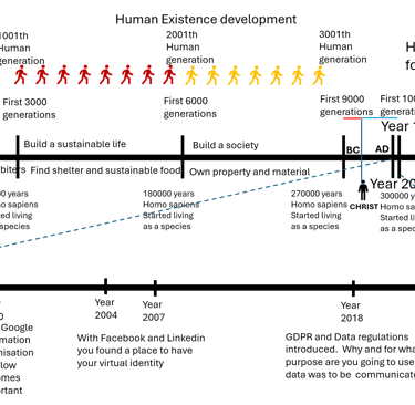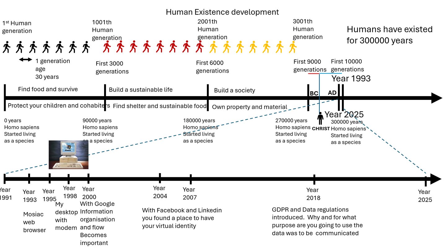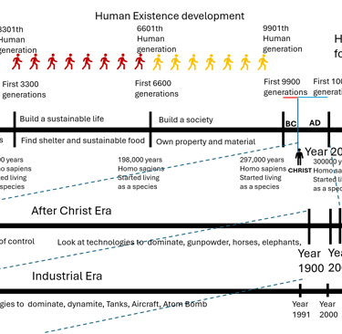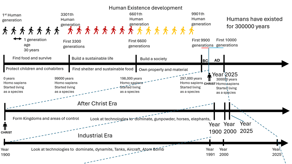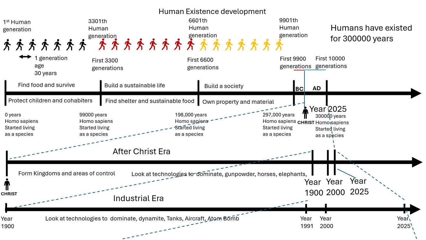Above diagram shows the time scale of Human development from an Animal species to 2025 today