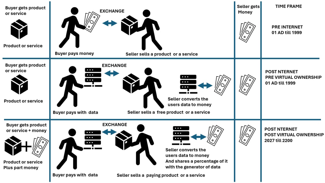 This marks the third phase: just as barter evolved into currency, the Internet is moving from data extraction to data ownership—ushering in the era of Virtual Ownership.
