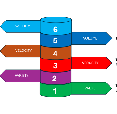 In Part 5 Data requires structure to be useful : Big Data once promised a revolution, but it stumbled—because without structure, data is just noise. As shown in the diagram, data only becomes useful when it’s organized across six key dimensions: Value, Variety, Veracity, Velocity, Volume, and Validity. These layers ensure relevance, reliability, speed, scale, and legality—all essential for turning raw data into actionable insight.